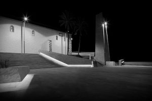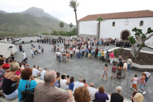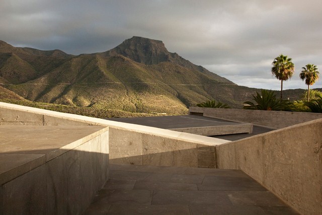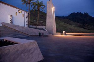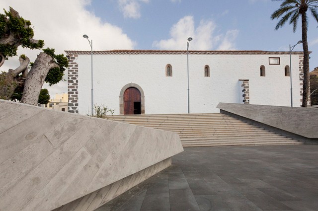The old quarter of Adeje is set on the western side of Barranco del Infierno and the Plaza España, the heart of the town, sits on its edge. Despite housing the Town Hall and the Santa Ursula Church, this latter a listed building from the 15th century, the square was laid out off centered with respect to them, a situation worsened by a couple of uninteresting ruined houses that blocked the views to the ravine. We complemented pre-existing valuable features, such as the healthy trees, and improved the accessibility of the plaza and the relationship with its limits. To the west, the balustrade was removed to enhance the relationship between the space and Calle Grande; to the north a wide staircase was built rising towards the Church; to the east, descending bleachers allow views towards the mountains; to the south it connects with the walk along the cornice of the precipice. The square, thus made two and a half times bigger, is transformed into an «infinite plaza» that projects views towards the landscape.