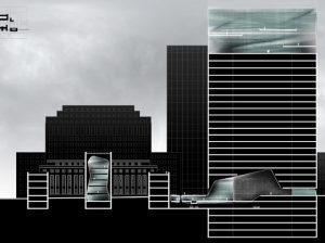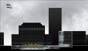 Description: The proposal for Anglo American strove to solve the problem of a urban campus that had outgrown itself. The redesign of the buildings was essential in creating a cohesive readability and connection of the five buildings for the Anglo American company. Their campus exists as a major urban structure, comprising of two city blocks organized by a major and minor axis at the street level. The scale of the project required taking into account issues that will help redefine the future planning of the city of Johannesburg and the urbanism that is developing in the area. Our proposal was intended as a complete the regeneration of the urban planning, landscape and communications. The design acts as a revitalization of the area and improves the existing urban structures. The major entrance to the facility was reorganized to act as a vacuum. Located at the intersection of the two main axes of the campus the space exists as an excavation. It is a underground open space designed for meetings and creating a central identity of the campus massive footprint. Functions are introduced to allow large meetings and speeches to happen in the central part of the campus, this is highlighted by the exterior garden which is covered by a canopy of trees which shelters and cools the space. A tranquil retreat from the workplace becomes the heart of the campus and identity of the campus as a whole.[:]