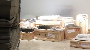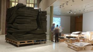 El material principal de la escultura que proponemos es FoamGlass, el cual se usa principalmente como aislamiento en edificios. El empleo de este material no es casualidad, en la medida en que encuentra una conexión íntima con las obras del arquitecto – sus particularidades están presentes en numerosos proyectos de Menis, tales como los ya nombradas Centro Cultural y de Congresos “Jordanki” y Hatching. Con unas dimensiones de 3mX3mX3m son necesarios 27m3 de material. La dificultad de obtener el material en las islas Canarias hace necesario importarlo de Europa.