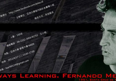 Fernando Menis will lecture at ASIA University in Taichung on the 17th of April at 15.00h. For more details check: https://www.facebook.com/asiau.id
